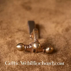 En håndgjort romersk armbrøst fibula. Denne romerske fibula er baseret på en original fra det 2. århundrede e.Kr.. Armbrøst fibulaer som denne blev brugt i hele det romerske imperium mellem 1. og 3. årh. E.Kr. Denne fibula er fremstillet af bronze og måler 1,5 x 3 x 4,6 cm. Det vejer ca.. 13,7 gram