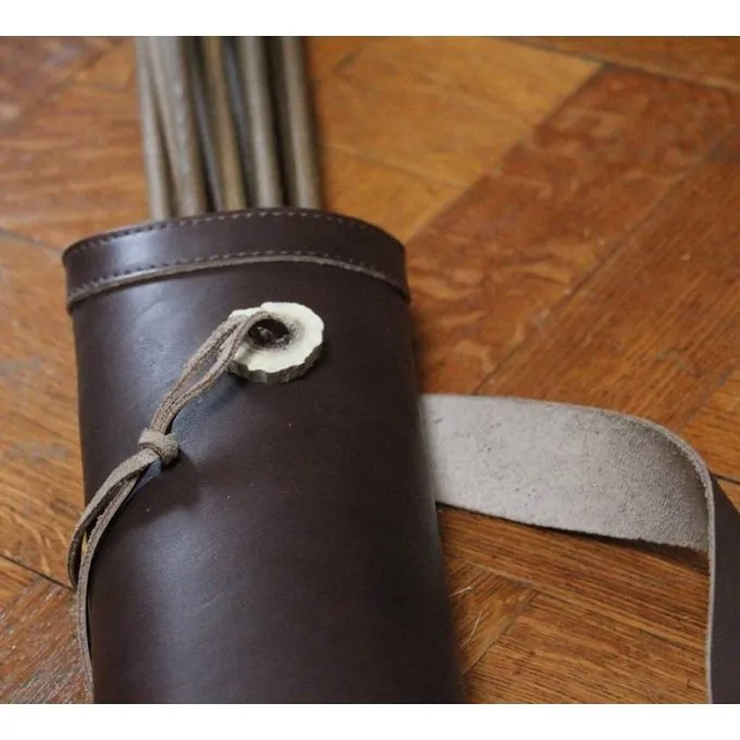 Denne praktiske Kogger er helt håndgjort og af læder og horn. Dens længde er 45 cm, og dens bredde er 9 cm.