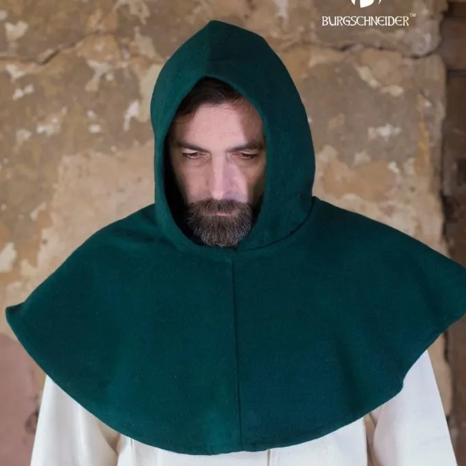 Denne chaperon er lavet efter flere 14. og 15. århundrede manuskripter, pen tegninger og skulpturer. Chaperons som denne blev båret hele feudale Europa. De beskytter hovedet, nakke og skuldre fra regn og kulde. Chaperoner blev båret af mennesker fra alle klasser i samfundet og begge køn.