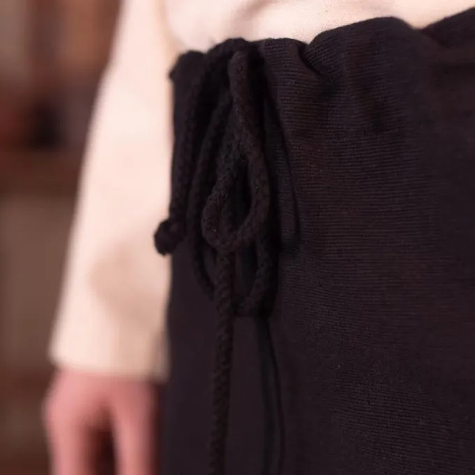 Disse bukser er baseret på (tidlige) middelalderlige bukser. Denne model af bukser er specielt lavet til kvinder og perfekt til alle slags fantasifigurer. Med blonder omkring taljen kan du fastgøre bukserne fast, så der er ikke behov for noget bælte med bukserne. Komfortable bukser til festivaler, Comic Cons og Larp.