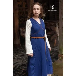 Denne lys, ærmeløse kjole i fin bomuld krammer overkroppen og er monteret på figuren med en snøring bagpå. Kjolen har en V-halslinje med dekorativt broderi, der fortsætter i faldet. Khara -kjolen kan bæres som en overdress i kombination med en lang tunika eller kjole.