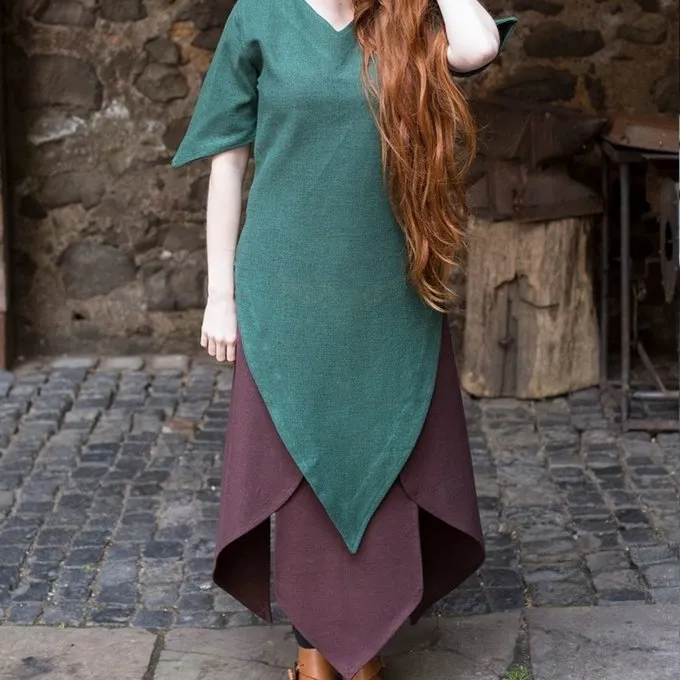 Med Laylin tunika du kan skabe mange forskellige outfits til Larp og cosplay. Den tunika er sømmet ved halsen, ærmerne og forneden. Den tunika har påpeget former: ærmerne er spidse og også bunden.