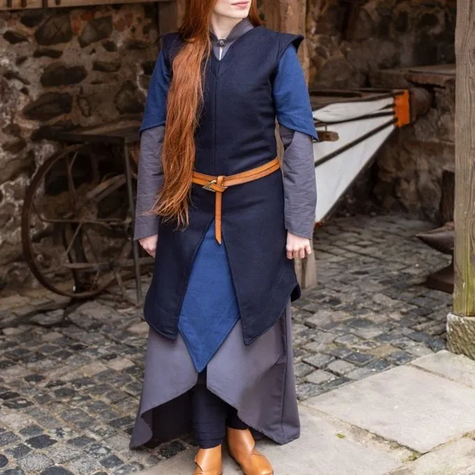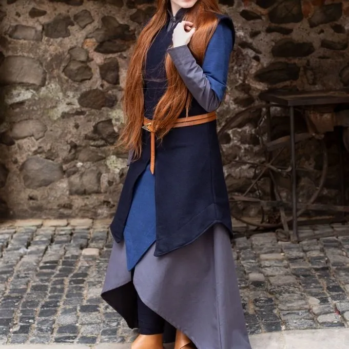 Tunika Meril er et alsidigt tunika med, som du kan oprette din egen kigge efter en LARP, Cosplay eller fantasi outfit. Den tunika kan bæres over andre tunikaer, kjoler eller bukser. Ved at bære tøj i andre farver nedenunder, eller en anden farve kappe, kan du lave en smuk farvekontrast. Perfekt til elvere, troldmænd, orientalske figurer mm Det er lavet af uld og tilbyder derfor ekstra varme i dårligt vejr og koldt, når du bære det over tyndere tøj.