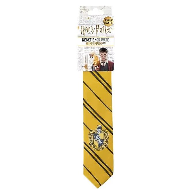 Perfekt til en Harry Potter cosplay -kostume! Dette slips er en officiel kopi af de bånd, som Hogwarts -studerende bærer i Harry Potter -filmene. Kombiner det med en af vores Harry Potter -klæder og Hogwarts -studerende trøjer til et komplet cosplay. Hvis du har brug for et slips til en særlig lejlighed, er dette slips også sjovere end standarddesignene. Dette slips er lavet i Hufflepuff -farverne og har et Hufflepuff -logo på fronten.