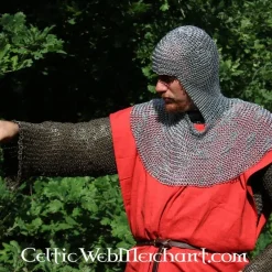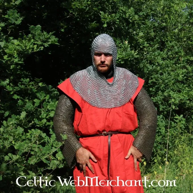 Denne coif er fremstillet af 1,6 mm tyk galvaniseret gathered Runde nitter med en indvendig diameter på 8 mm. De er vævet fire til én. Den coif har en firkantet halsudskæring og vejer ca.. 3 kg.