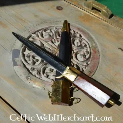 Denne replika har en trekantet klinge. Håndtaget er lavet af træ beklædt med læder. Både skede og Dolk har messing dele. Den Dolk har en længde på 33 cm og det har en klingelængde på 19 cm.