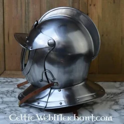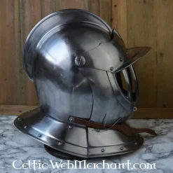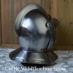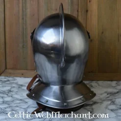Battle-klar lukket burgunderhjelm. 16. århundrede hjelm giver optimal beskyttelse til ansigtet. Den er velegnet til re-enactment og ridning.