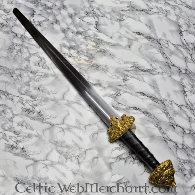 messing Knap og på tværs af vagten er rigt dekoreret. Uddannelsen sværd er velegnet til lette swordfights. Længden af sværdet er 90 cm, og det har en bred klinge på 60 cm.