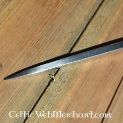 Produkt detaljer: Hovedstørrelse: 56,5 x 23 cm / Ringdiameter: 3,2 cm / Materiale: DA45 fjederstål / Edge: halvskarpt / skaft medfølger: nej / based on da historisk original: ja /