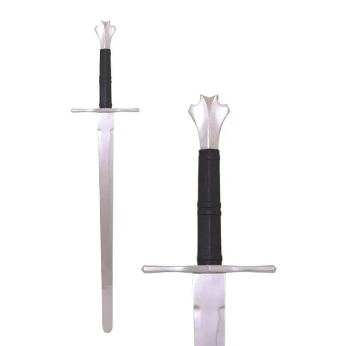 halvandenhånd havde en størrelse mellem en én-hånds sværd og et tohåndssværd. Grebet var noget større end grebet af en én-hånds sværd, så soldaten kunne sætte en ekstra hånd på grebet for hårde slag og lægge mere kraft bag slag. Denne uddannelse sværd er velegnet til lys sværd kampe. Det har en typisk flamsk Knap formularen det 15. og 16. århundrede. Grebet er dækket med læder.