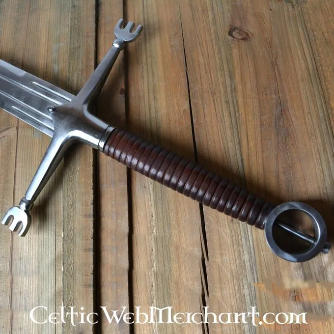 Dette sværd er en kopi af en 15. århundrede irske original. Den blev brugt af den skotske-irske Galloglass (Galloglaich). Galloglaich var lejesoldater fra Scottish-irsk efterkommer, der kæmpede fra det 13. århundrede, indtil det 16. århundrede i de mange skotske og irske krige mod englænderne og sig selv. De oprindelige sværd kan ses i adskillige 15. århundrede irske tegninger og tryk. Flere lignende originalerne er i dag en del af samlingen af National Museum of Ireland i Dublin. Dette sværd har en irsk ring Knap og har en slående bred klinge. Det var primært bruges til hugning.