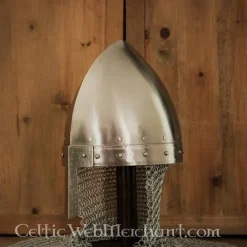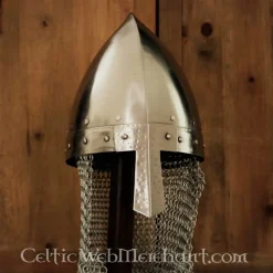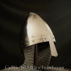 Denne hjelm er lavet efter flere skildringer på Bayeux-tapetet. Hjelme som denne var hovedsageligt slidt mellem det 11. og 13. århundrede i hele Europa.