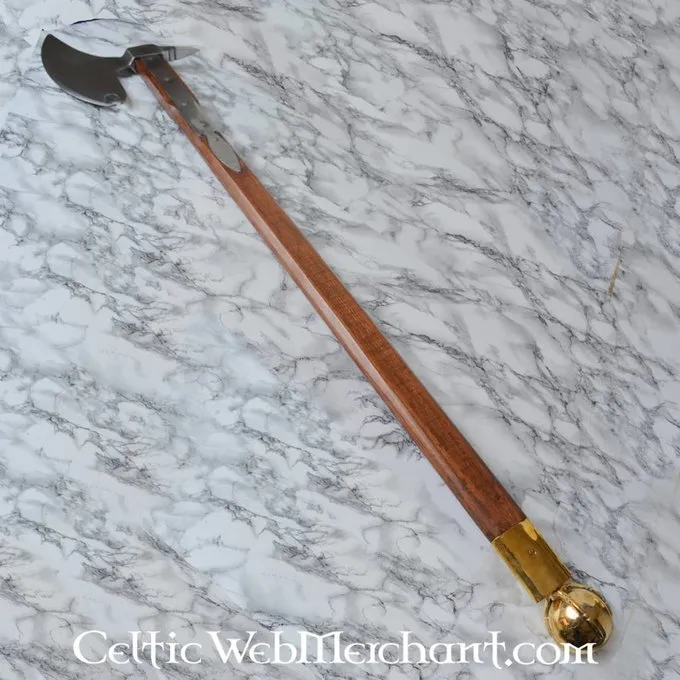Den irske økse var længere end en viking økse og blev ofte brugt af keltiske infanterister. Originalen af denne kopi stammer fra ca.. det 16. århundrede. Den ende af håndtaget er færdig med messing. Den økse har en længde på 127 cm og har et hoved på 29 cm. Det vejer ca.. 2,4 kg.