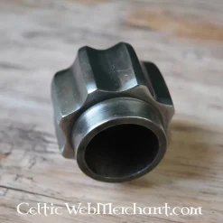 Dette er en kopi af en middelalderlig stridskølle hoved, lavet af støbt stål. Det har en Tykkelse ca. 5 til 6 mm, højden er 5-6 cm, og det har et øje på ca.. 29 mm. Det weigha 0,4 kg.