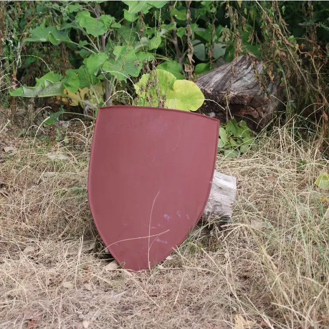 Denne kite Skjold er fremstillet af 1,2 cm tyk stål. Det er kun behandlet med en Rustfrit Stål lag, og det kan males i ønskede farver eller frakke-of-arme. Bagsiden har et håndtag til et godt greb. Skjold har en højde på 68 cm og en bredde på 50 cm. Det vejer ca.. 3,3 kg.
