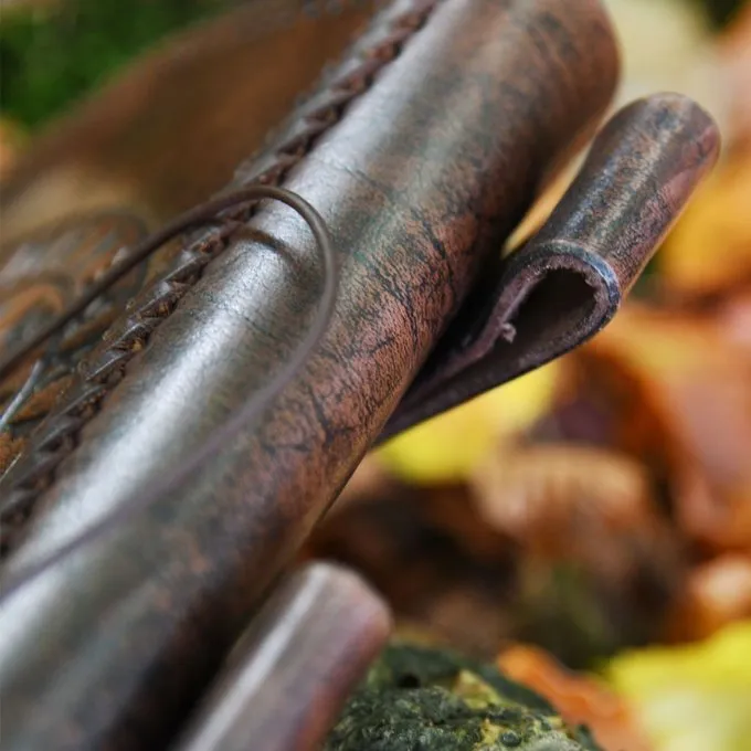 Denne taske er smukt dekoreret med et Vegvisir -motiv. Vegvisir er et symbol fra det islandske Huld -manuskript, en okkultet trylleformular fra det 19. århundrede. Vegvisir betyder: det, der viser vejen. Den, der bar dette magiske symbol, ville ikke gå tabt under en storm. Det vides ikke, om de tidlige middelalderlige vikinger vidste dette symbol. Men i moderne vikingekultur og blandt neopaganer spiller den en vigtig rolle og har fået en ny kontekst. Læder af høj kvalitet giver posen et luksuriøst look, og den er perfekt til festivaler, vikingekostumer og cosplay. Indersiden er lavet af ruskind, og du kan lukke den med en læderknap.
