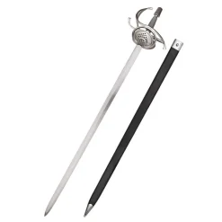 Typisk for Pappenheimer-rapier er formen på den kurvformede beskyttelse, der beskytter hånden. Denne dekorative rapier har et greb indpakket med ståltråd og et semi-skarpt blad med en skarp spids. Det leveres inkl. En træskår dækket med sort læder, skinden har stålkapsler.