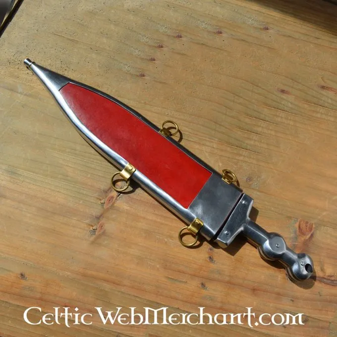 Denne pugio er 38 cm lang, med et blad på 25 cm lang. Den vejer 1 kg. det er lavet af kulstofstål, med en skede af stål og træ