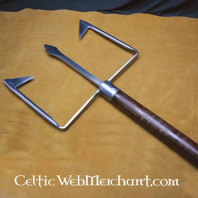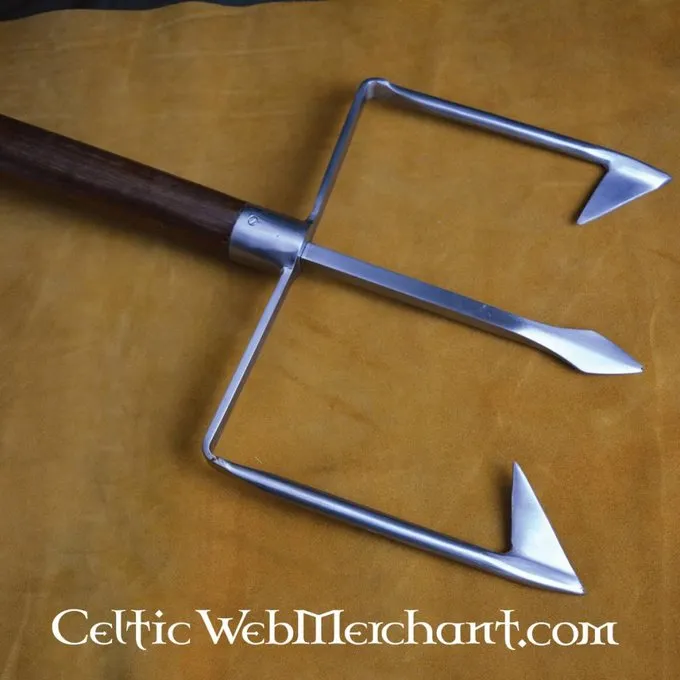 Dette er en rekonstruktion af en retiarius trefork fra omkring år 0, lavet efter en romersk relief. Dens længde er 131 cm, dets maksimale bredde er 31 cm, og det har tænder 23 cm. Den leveres med et træ skaft og det vejer 1,9 kg