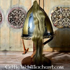 Denne Viking hjelm er baseret på originaler, der blev båret af den Rusvik, vikingerne i Rusland og Østersølandene områder. Den Kant af denne spangenhjelm er dekoreret med messing motiver. Denne Spangenhjelm har en hestehale lavet af ægte hestehår.