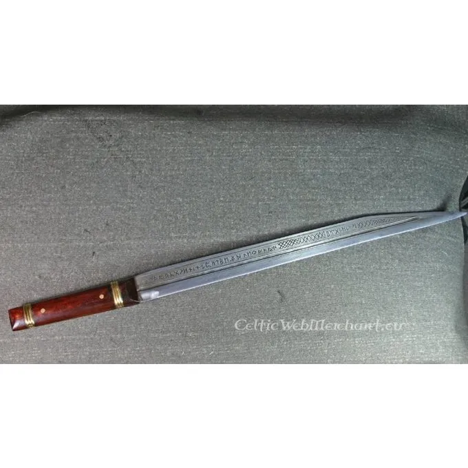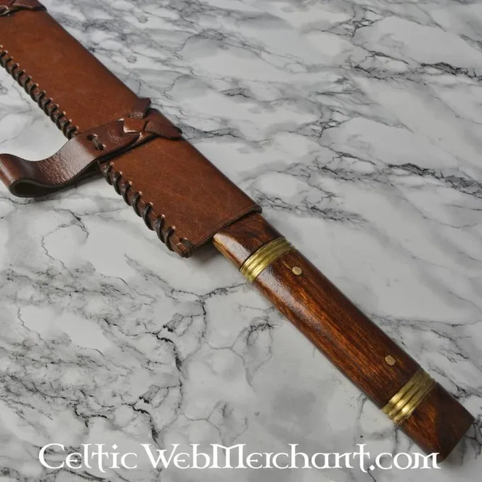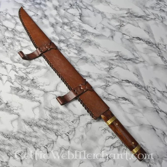 Produkt detaljer: Længde: 73,5 cm / Klingelængde: 55,5 cm / Grebets Længde: 18 cm / Vægt: 906 g / Ståltype: DA45 kulstofstål hårdhed 48 HRC. / Kant: halvskarpt / Tangkonstruktion: konstruktion with fuldt tang / Greb: træ / based on da historisk original: