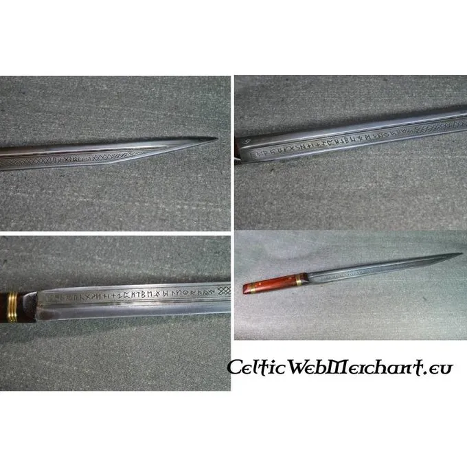 Klingen på sax er dekoreret med runer på den ene side. På den anden side, der er navnet Beagnoth, sandsynligvis Smeden eller ejeren af sax.
