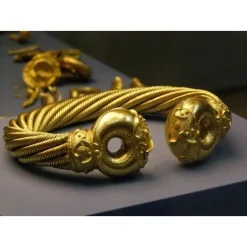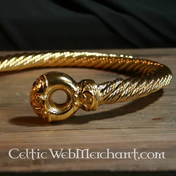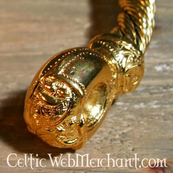 Denne torc er fuldt håndgjort og snoet og gengivet i alle detaljer. Den er lavet af messing, som er dækket med guld. Den vejer 1,2 kg og har en bredde på 23 cm