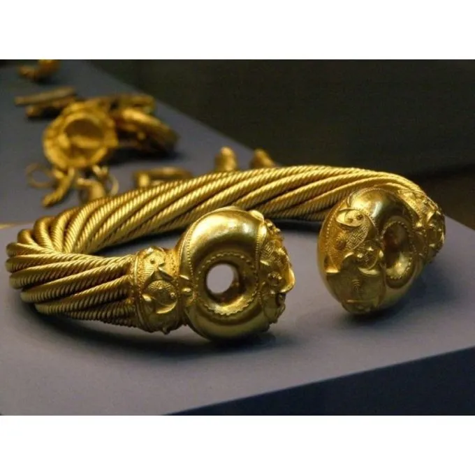 Dette moment er en kopi af den velkendte Snettisham drejningsmoment. Originalen blev sandsynligvis lavet omkring 75 e.Kr., og blev fundet i det område af den magtfulde stamme af Iceni, hvoraf Boudicca var dronning flere generationer senere. Det er i øjeblikket i indsamlingen af British Museum.
