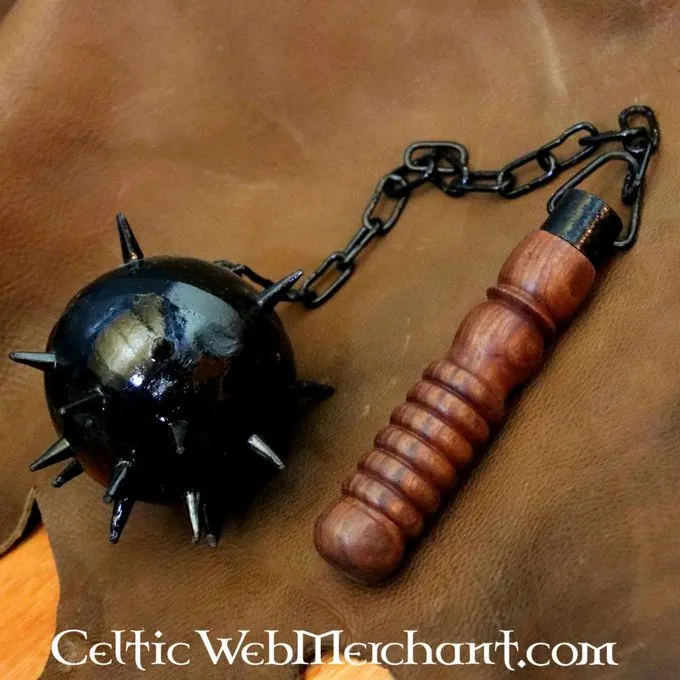 Denne stridsplejl har en hård træskaft og en metalkæde og bold. Håndtaget har en længde på 14 cm og kæden har en længde på 40 cm. Bolden med punkter har en diameter på ca.. 10 cm.