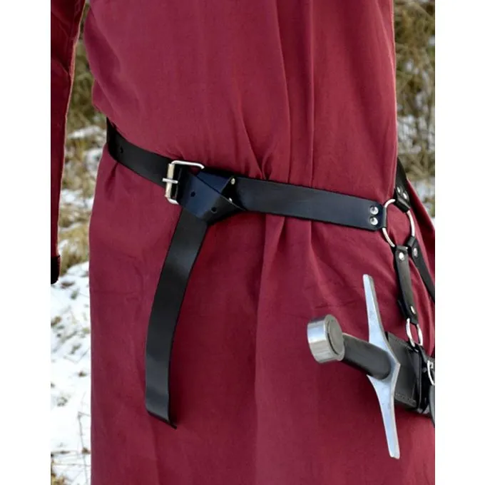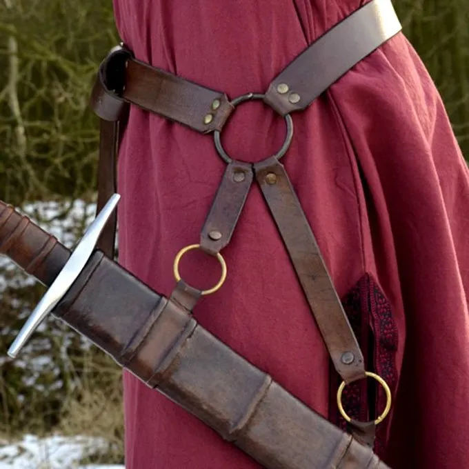 Dette sværd bælte er perfekt til at bære alle dine middelalderen og renæssancen sværd. Sword skeder kan nemt blive hængt i løkken af bæltet så sværdet er knyttet til din hofte i et stabilt og robust måde.
