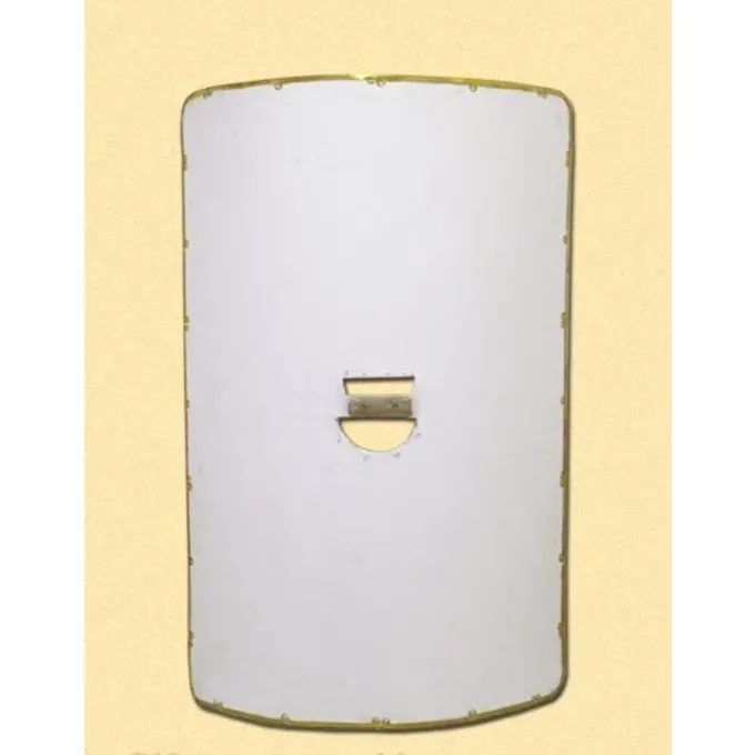 Dette skjold er 1,2 cm tyk og fremstillet af flere lag af træ. Det er dækket med ufarvede linned. Du kan male Skjold i dine yndlingsfarver, det er egnet til moderne og historiske maling. Bagsiden er strenghened med smalle trælameller. Skjold kan udføres med et greb bag umbo. Dens højde er 108 cm, bredden 88 cm (herunder kurven) og vejer 7 kg.
