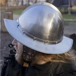 Specifikationer Materiale: blødt stål 1 mm / Størrelse: M max. Hovedets omkreds 60 cm, L: max. Hovedets omkreds 63 cm / Vægt: 1,8 kg / Baseret på historisk original