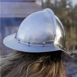 Denne morion er lavet efter 15-16th århundrede Spansk malerier. Den morion er designet til at beskytte hovedet og samtidig holde et perfekt udsyn. De kind flapper er nitteed til hjelmen og give ekstra beskyttelse til ansigtet. Den morion kan fastgøres under hagen med en læderrem