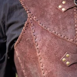 En høj kvalitet Brigandine af ruskind med remme. Med denne Brigandine du beskytte din torso og tilbage i løbet larp & reenactment slag. Dette læder rustning er lavet af strimler af ruskind, der er sammenføjet med håndsyede sømme. Dette skaber en autentisk udseende! Med de spænder på forsiden kan du justere Brigandine til din størrelse. Der er også snørebånd på siden til at bære den Brigandine strammere eller løsere. Denne rustning er helt neutral og passer i stil med Viking, Middelalder & renæssance kostumer. Du kan bære den over en brynje eller en Gambeson findes i løbet af kampe. For en mere afslappet tøj, bæres uden på en tunika, skjorte eller dublet.