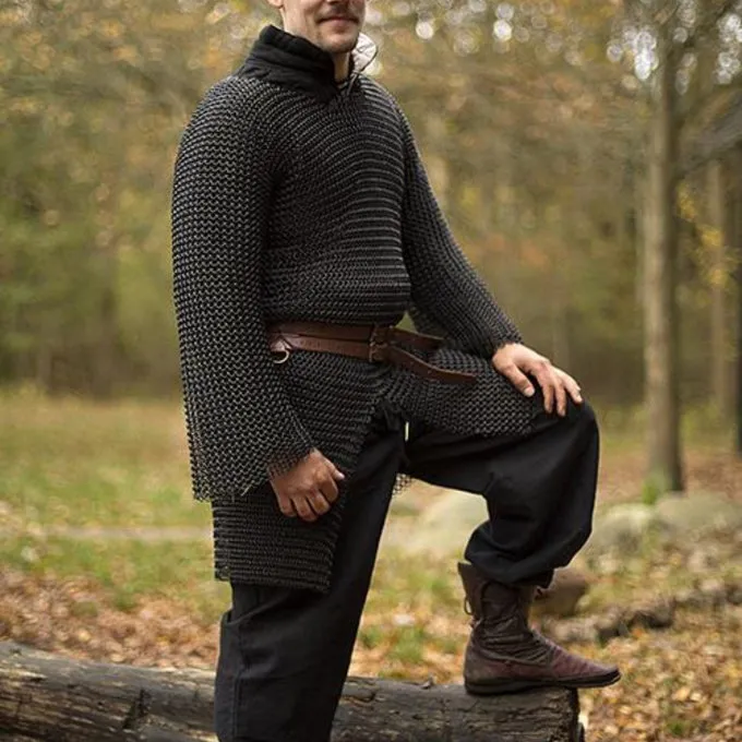 Denne type af brynje blev ofte brugt i middelalderen. Opdelingen gør det nemmere at bruge, når rider på en hest, og gør bevægelsen lidt lettere. Den brynje har lange ærmer og er lavet af blødt stål.