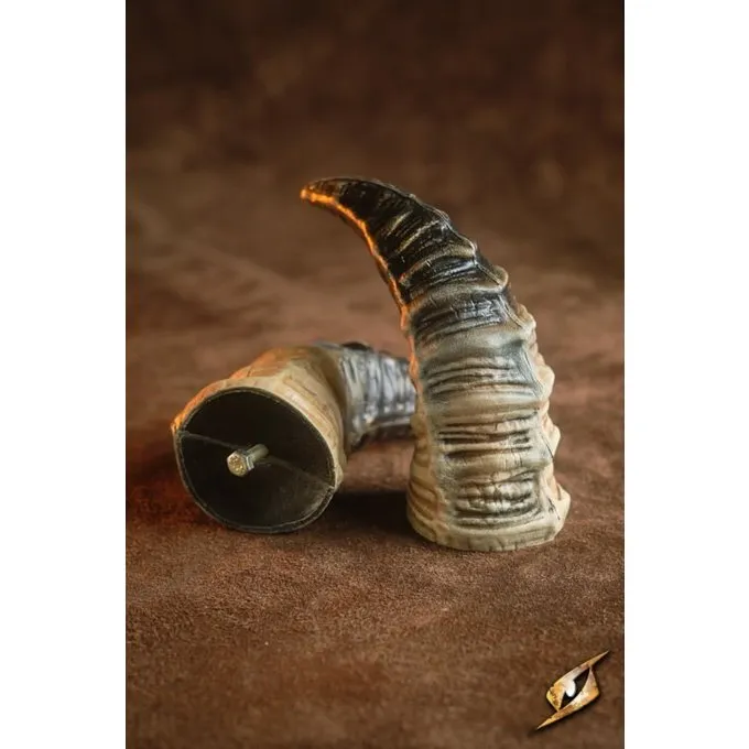 Disse dæmonhorn er det perfekte tilbehør til at give din rustning et uhyrligt look. De er lavet af polyurethan med monteringsskruer og kan let fastgøres til enhver episk armeringsrustning med pladsholderskruer, såsom Marauder -rustningen. Hvis du kan lide DIY -projekter, kan de Mountable Demon Horns teoretisk monteres på enhver rustning. Du kan også fastgøre hornene til for eksempel et hårbånd, så du kan bære hornene på dit hoved. Hornene fås i 3 størrelser.
