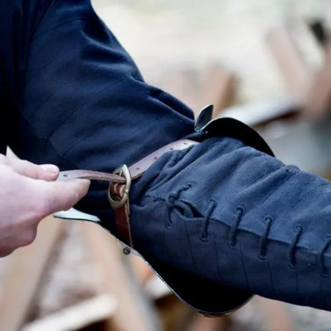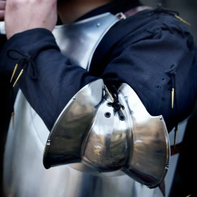 Disse couters er baseret på historiske originaler af milanesiske oprindelse fra det femtende og sekstende århundrede. Originaler kan ses i f.eks Castel Coira. Armor fra Milano var slidt hele Voer Europa i denne periode, og var kendt for sin gode kvalitet. Disse couters beskytte albuer og en del af den øvre og nedre arm. De har rejst kanter til at aflede slag af våben. Du kan fastgøre panser sikkert til din arm med læderrem. Huller er foretaget på niveau med albuen og snørebånd er inkluderet for at binde de couters til dine dublet, Gambeson findes, bracers eller andre rustning.