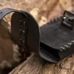 Denne pose har et smukt design og er velegnet til forskellige LARP og Cosplay tegn. For eksempel til pirater, snigmænd, handlende mv. Posen er lavet af blødt suede læder, og klappen og stroppen er fremstillet af robust læder. Den har håndstitchede detaljer, klappen og siden af posen syes med en tyk læderblonde. Posen har et autentisk udseende, der passer til mange tegn. Det har løkker på bagsiden, så du kan hænge det på dit bælte. Du kan lukke posen med messing spænde på forsiden.