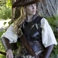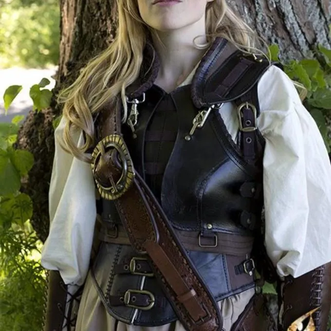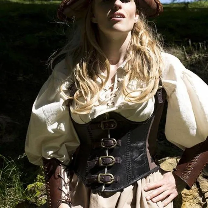 Med denne smukke læder korset kan du oprette den mest omfattende LARP, Cosplay og steampunk outfits. Dette korset er slidt under brysterne og er lavet af robust holdbart okselæder. Med lærred bomuld stropper korsettet kan justeres til din størrelse. Også på bagsiden er snorker at justere størrelsen nemt