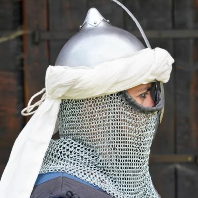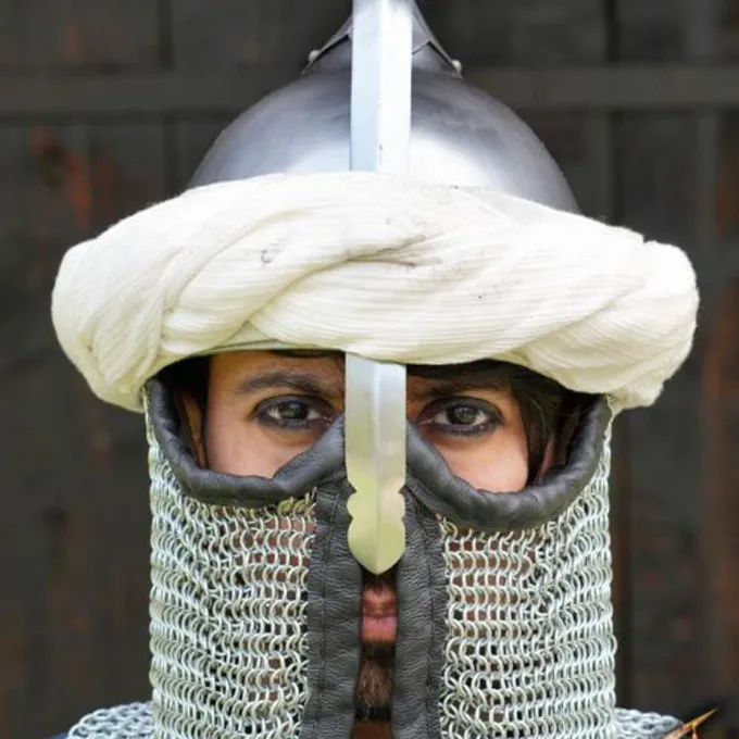 Du kan fastgøre denne turban med snørebånd på bagsiden. Du kan fastgøre det direkte til dit hoved, eller bæres uden på en hjelm eller anden hovedbeklædning. En perfekt tilbehør til LARP af østlige tegn eller Cosplay af Game of Thrones (figurer fra Dorne), Aladdin, Kingdom of Heaven, etc.