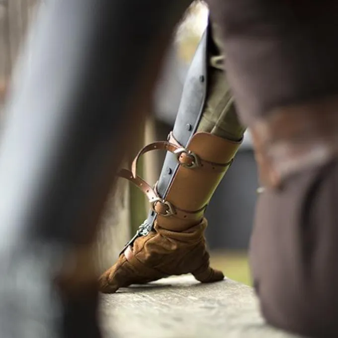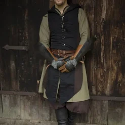 Disse stålvambraces med chainmail er inspireret af middelalderlig rustning. Panseret består af et par vambraces og halve kigger, der er forbundet med et stykke kædepost. Kanten af rustningen er dekoreret med nitter. Armoren er let at fastgøre til armen og hånden med stærke læderremme. Du kan kombinere rustningen med et par gode handsker for ekstra sikkerhed. De er patineret for en ekstra speciel effekt. Denne rustning er 1 mm tyk og passer til Larp-slag, Cosplay og teater.