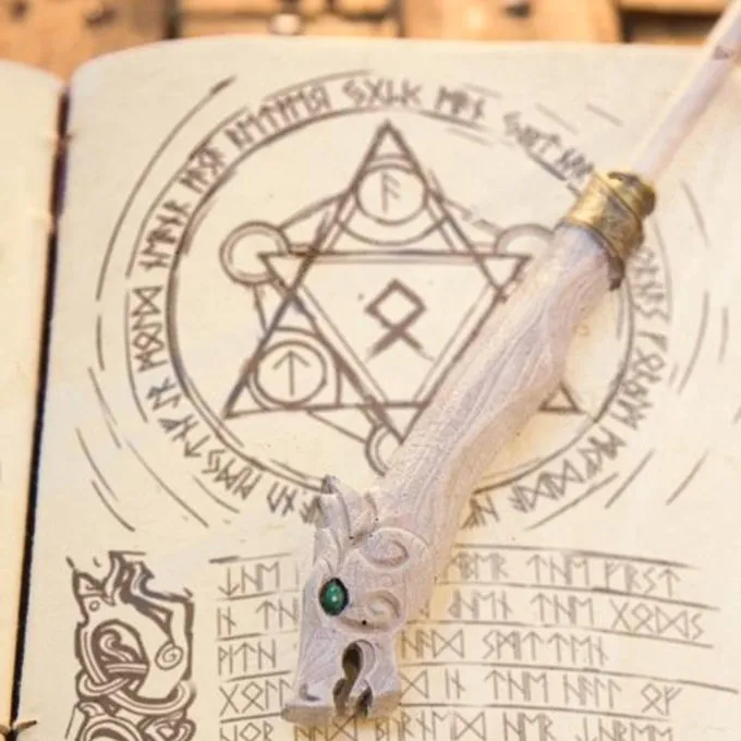 Denne stav er designet naturtro så grebet synes at være lavet af træ med en drage hoved med en perle øje og en guld bånd rundt om grebet. En smuk stav inspireret af oldnordiske mytologi! Den tryllestav er lavet af træ og har en polyurethanskum greb. Du kan adskille grebet fra staven og sætte det på andre Epic Armory tryllestave, for en bedre tilpasning og udskiftning af knækkede spidser. Denne tryllestav krævede lidt vedligeholdelse og er perfekt til LARP eller Cosplay af Harry Potter, Fantastic Beasts og andre magiske verdener.