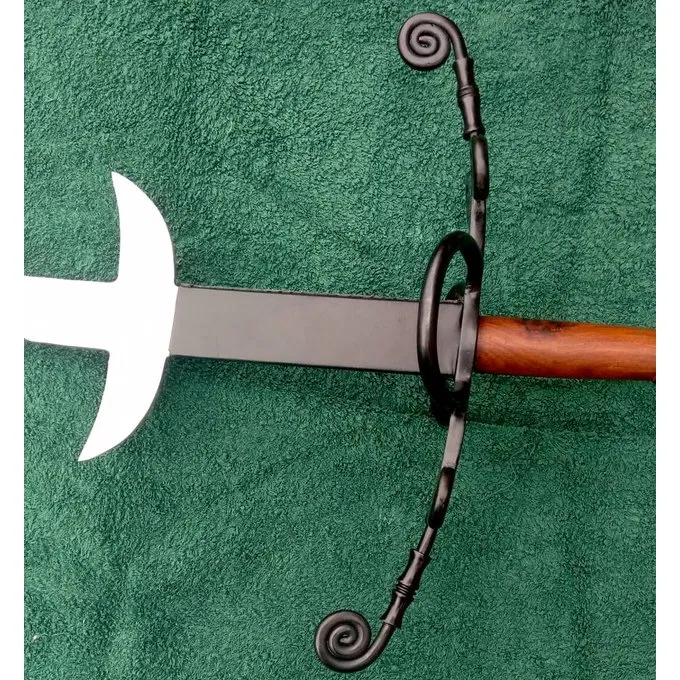 Længden af denne sværd er 144 cm. Længden af bladet er ca.. 100 cm og den er forsynet med en ekstra cross-vagt. Den er lavet i en bølget form, det er derfor denne type sværd kaldes flamberge. Sværdet har en jern på tværs af vagt og en træ greb. Den vejer 3,8 kg