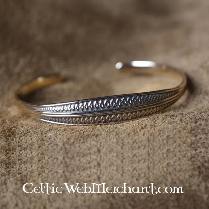Dette armbånd er lavet af bronze og er dekoreret med geometriske motiver. Det vejer ca.. . 25,3 g