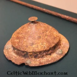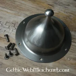 Skjoldbuler som dette blev primært brugt af de germanske stammer. Denne Skjold boss er fremstillet af 2 mm tyk stål og har en diameter på 19,5 cm.