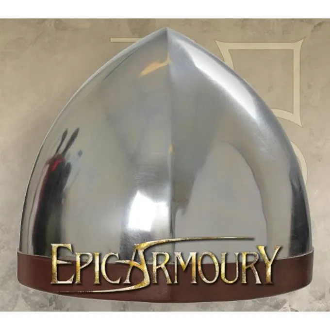 En praktisk middelalderlig grundlæggende hjelm, velegnet til bueskytter eller til lejlighedsvis brug. Hjelmen er lavet efter den velkendte Norman Hjelme with næseskinne. De var meget populære mellem den 9. og 14. århundrede, og de blev båret over hele Europa. De er afbildet på bl.a. Bayeuxtapetet.