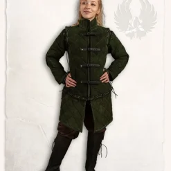Denne lange slagkofte er forsynet med aftagelige ærmer. Det er perfekt egnet til at bære under brynjefrakker eller plade rustning. Den slagkofte er lavet af ru vævet bomuld og er fyldt med 100% polyester. Det er ca. 2 cm tyk.