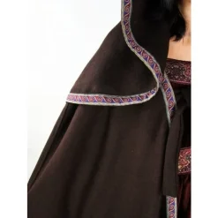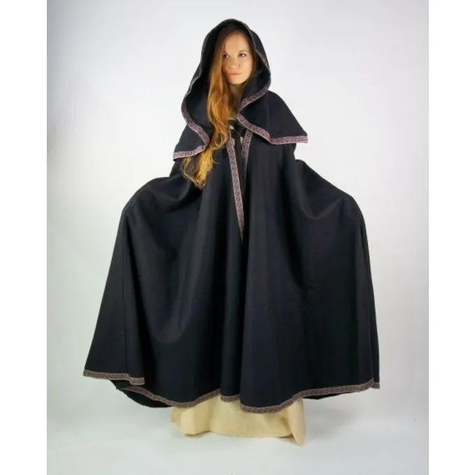Denne uld mix kappe & har Kanter med elegant broderet mønstre. Egnet til både nyopførelse og larp. Kappen har stropper ved fronten til fastgørelse