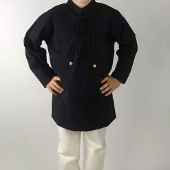 Denne trøje er håndvævet af blød bomuld. Halsen kan lukkes med en snor. Den fås i farverne sort og fløde i størrelse XXXS til XS.
