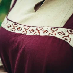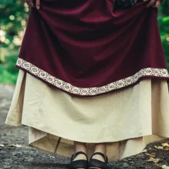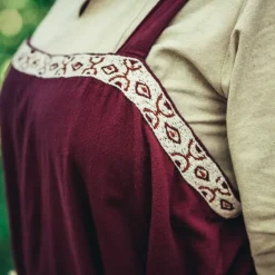 Hangerok var en type kjole, som vikinger og andre tidlige middelalderlige europæiske kulturer bar over en glidekjole. Kvinder kombinerede en glidekjole og hangeroc, som begge kontrasterede i farve, som f.eks. Naturlige og røde eller gule med grønne. Damer havde også farverige strenge af perler forbundet med to skildpaddebroscher. Med deres tøj og tilbehør havde vikingekvinder en smuk kontrastfarvepalet og viste deres rigdom gennem deres tilbehør og den type farver, de var. Slipkjolen måtte også altid vises over hangerok for at understrege farvekontrasten. Kvinder bar også et bælte over hangerok, som de kunne hænge nyttige ting til daglig brug som nøgler, en pose med sølv, en kniv osv. Toppen og bunden af denne luksuriøse hangeroc er færdig med et smukt bånd, der viser en dekorativ vævet mønster. Du kan lægge hangerok over dit hoved og lukke den med snørene på siden.